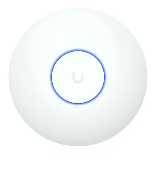 Ponto de acesso WiFi 7 compacto, montado no teto, com 4 fluxos espaciais e uplink de 2,5 GbE.