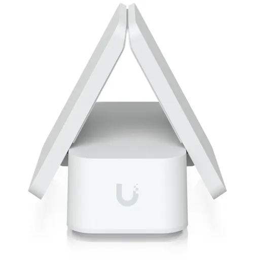 Suporte com peso e braçadeira ajustável mantém dispositivos UniFi sem rack na vertical em superfícies planas.