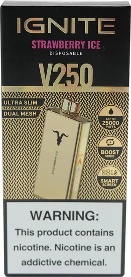 Vape Descartável Ignite V250 Strawberry Ice 25000 Puffs Gold