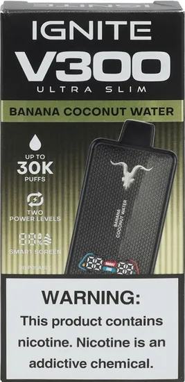 Vape Descartável Ignite V300 Ultra Slim Banana Coconut Water 30000 Puffs