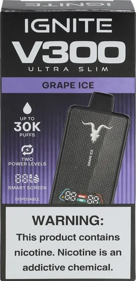 Vape Descartável Ignite V300 Ultra Slim Grape Ice 30000 Puffs