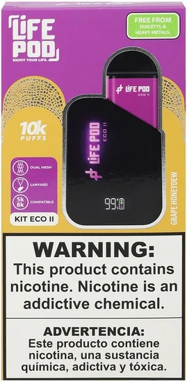 Especificações de Vape Descartável Life Pod Kit Eco II - Grape Honeydew - 10000 Puffs