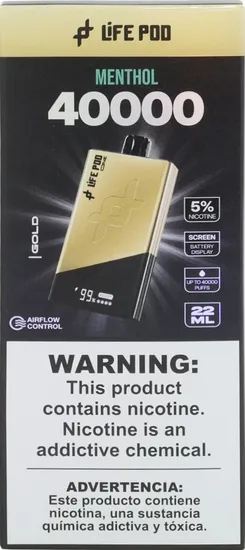 Vape Descartável Life Pod One Gold - Menthol - 40000 Puffs