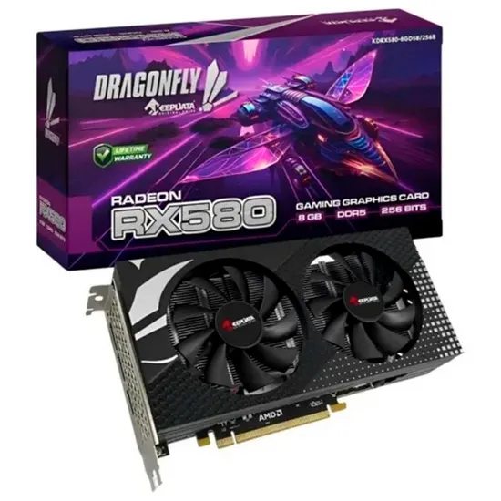 Placa de Vídeo RX580 16GB Keepdata Dragonfly Gaming BLK KDRX580-16GD5B /256BIT