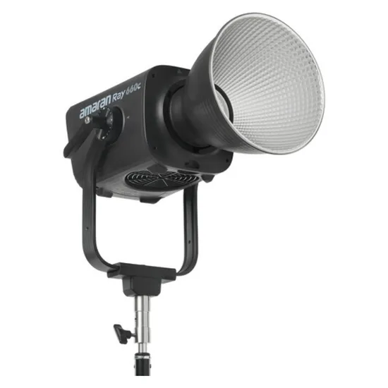 O monolight LED RGB Ray 660c de cores plenas é a luz COB de maior potência da amaran , com 660W, tecnologia OmniColor e recursos modernos. Seja para iluminar objetos ou preencher estúdios amplos, o Ray 660c é um monolight LED compacto e eficiente. Encontre gerenciamento intuitivo de configurações integrado e via aplicativo através do botão FlowTurn e configuração NFC, ou opte pelo controle DMX via USB-C adicionando um adaptador opcional.