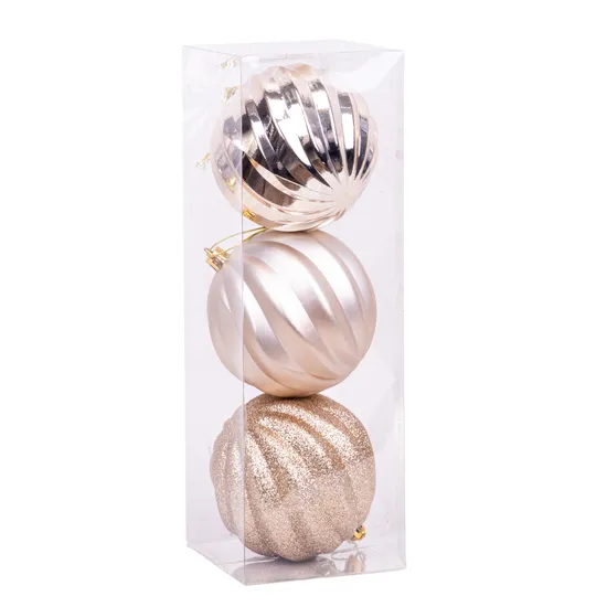Bola Decorativa de Natal 10 CM com 3 PCS Champagne