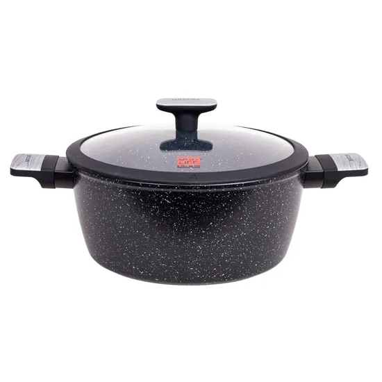 Caçarola Funda Giratória Ucc Life de 28 CM Em Granito Preto.