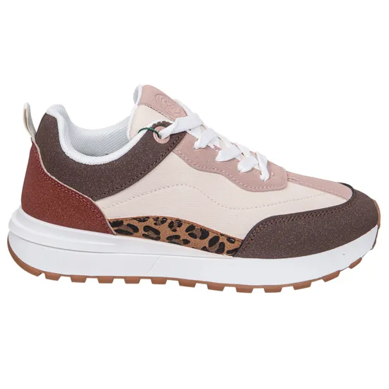 Seu design em tons pastéis com um toque de animal print oferece um acabamento sofisticado e único, que combina perfeitamente com looks casuais e elegantes. Este calçado proporciona conforto, suporte e um estilo exclusivo a cada passo.