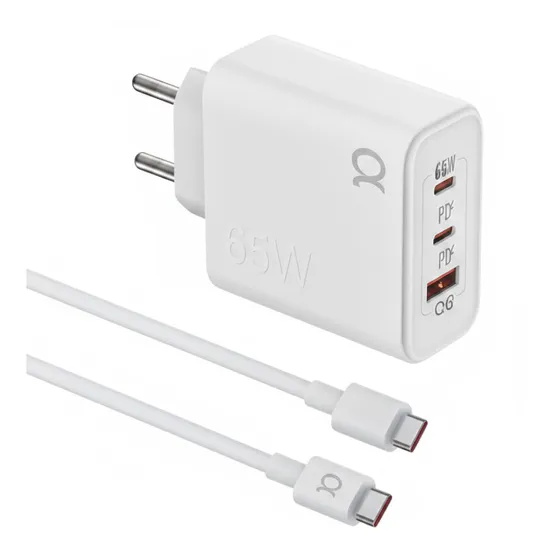 Carregador A'Gold Pro+CA46-5 USB-A/USB-C X2 com Cabo de 65W - Branco