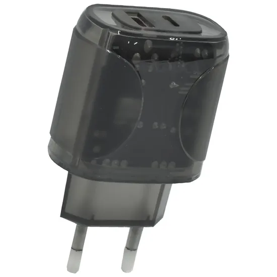 Carregador Tomada Satellite A-CC1203 USB / USB-C / 12W - Preto / Transparente