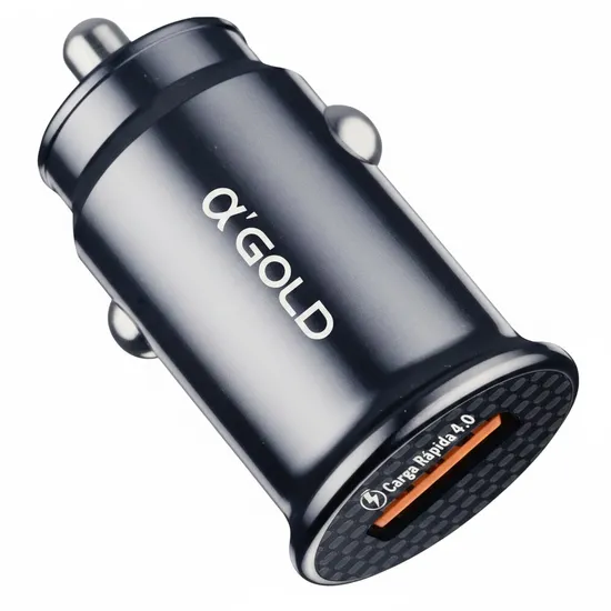 Carregador Veicular A'Gold CJ04-4 de 20 W com Carregamento Rápido USB-A - Preto