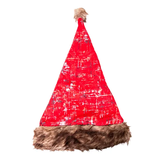 Chapéu de Natal Vermelho com Estampa Dourada e Detalhes Em Pelúcia Marrom