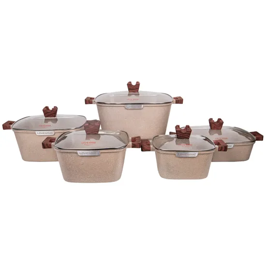 Conjunto de Panelas de Indução Antiaderentes Ucc Life de 10 Peças, Bege
