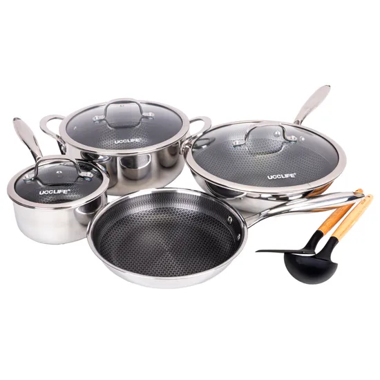 Conjunto de Panelas de Indução Ucc Life de 9 Peças, Antiaderentes, Em Aço Inoxidável, Tripla Camada.