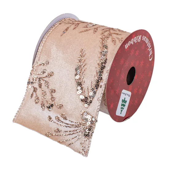 Fita Decorativa de Natal Bege com Desenho de Lantejoulas Florais 8 CM X 2,7 M