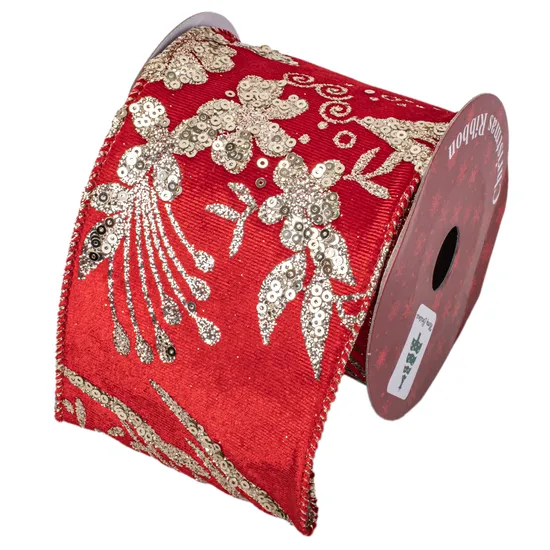 Fita Decorativa de Veludo Vermelho de Natal com Lantejoulas Douradas 8 CM X 2,7 M