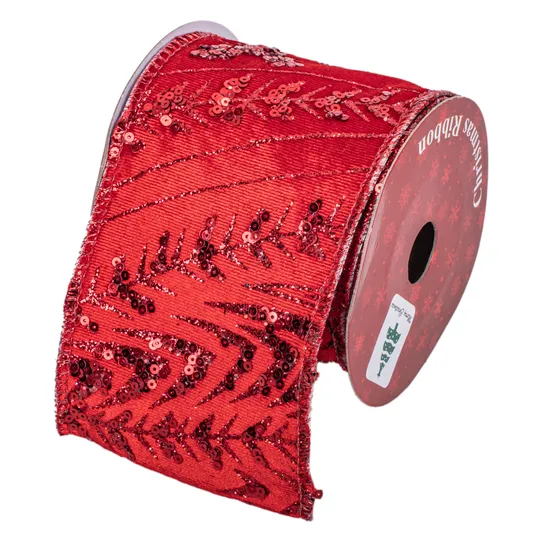 Fita Decorativa Natalina Vermelha de Veludo com Glitter 8 CM X 2,7M