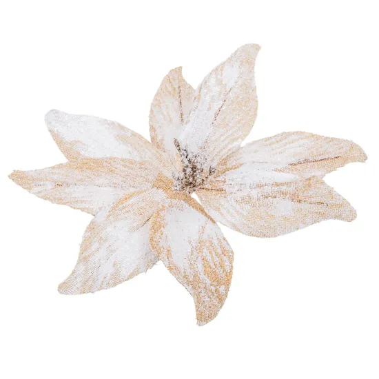 Flor Decorativa Natal Bege com Detalhes Brilhantes