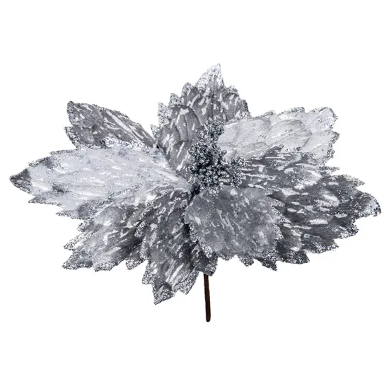 Flor Decorativa Natal Plateado