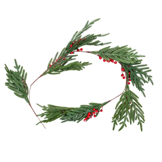 Guirlanda de Pinheiro Natalino com Frutas Vermelhas e Efeito Neve Decorativo 1,40M