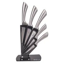 Jogo de Facas Bass para Cozinha Inox 5 Peças + Suporte Cor Inox