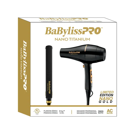 Kit Plancha Y Secador Babyliss Nano Titanium Gold