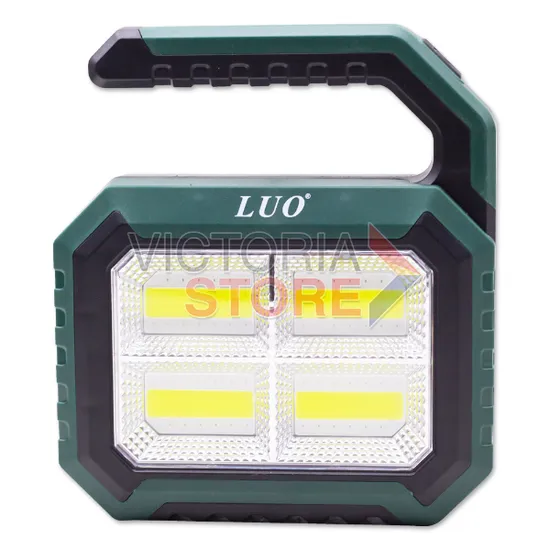 Lanterna LED Luo LU-302 / 2XPE+4COB / Multifuncional / 5 Modos de Iluminaçao / Recarregavel USB / Solar / Power Bank - Preto/ Verde