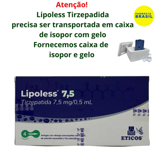 Lipoless Mounjaro Tirzepatide Lipoless 7.50MG/0,5 ML - 4 Seringass Pré-Cheias com Registro Sanitario. Temos Caixa de Isopor e Gelo.