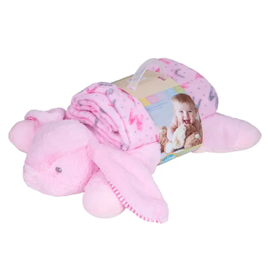 Manta com Almofada de Coelho para Bebê 45X30CM Rosa