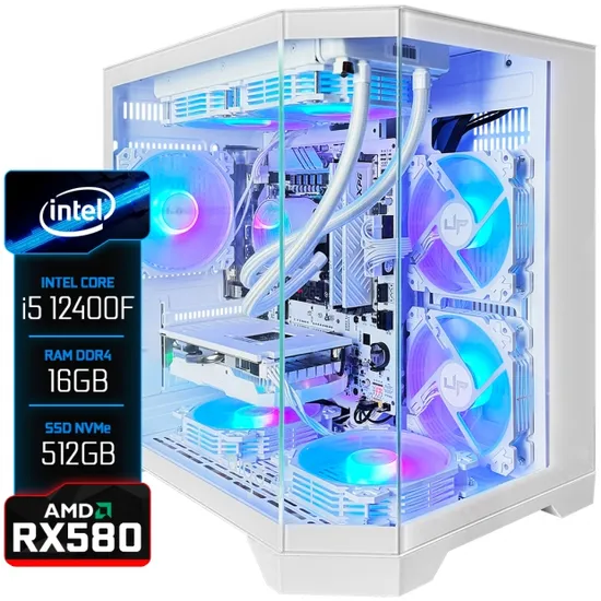 PC Gamer Montado Intel Core i5 12400F, Radeon RX580 16GB, 16GB Ram, SSD Nvme 512GB, Aquário, Branco