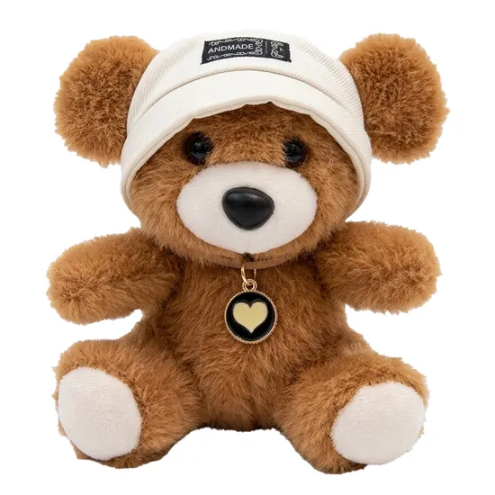Pelucia Oso MZ-096 Marrom com Boné Branco