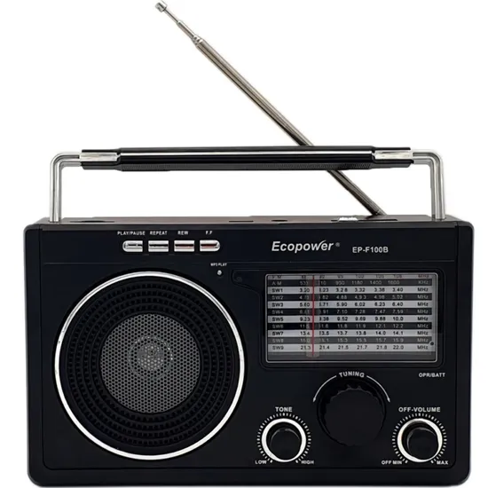 Rádio Ecopower EP-F100B USB/SD/FM/AM - Preto