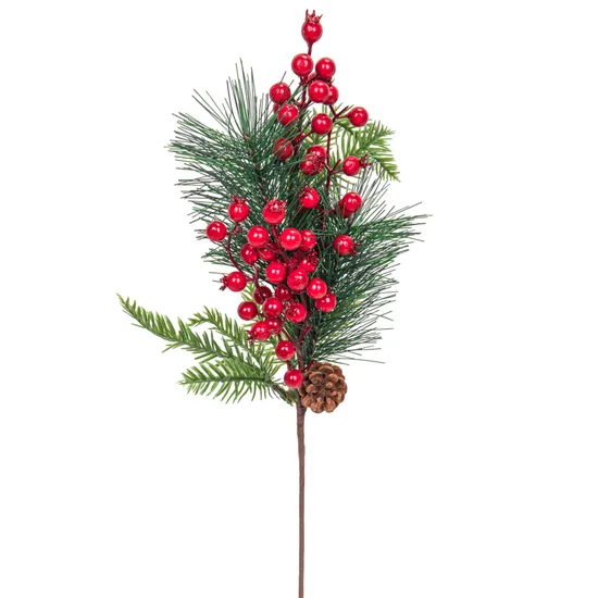 Ramo Decorativo de Natal com Pinha, Frutas Vermelhas e Folhagem Verde Artificial