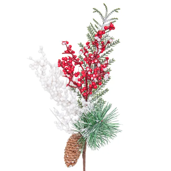 Ramo Decorativo Natalino com Pina e Bagas Vermelhas
