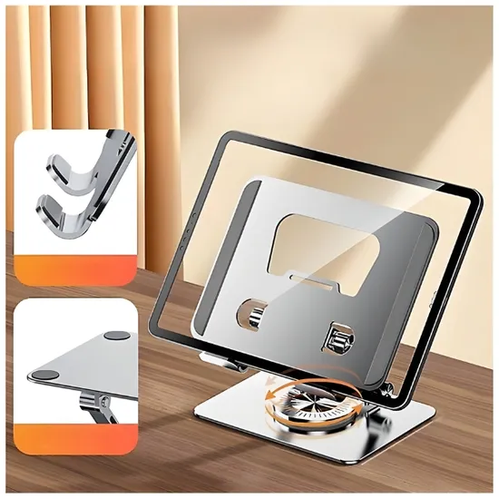 Soporte p/Notebook Metal 360 Giratorio Gris