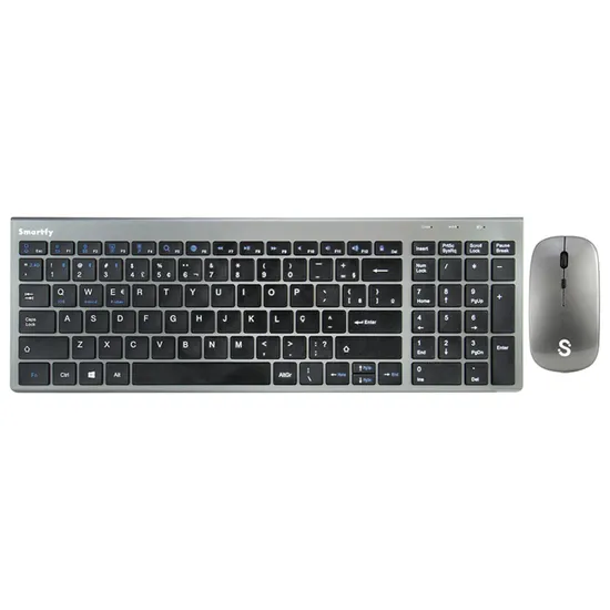 Teclado e Mouse Sem Fio Smartfy TW01B Português Cinza
