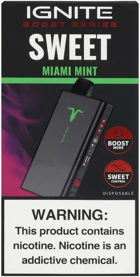 Especificações de Vape Descartável Ignite Sweet Miami Mint 40000 Puffs
