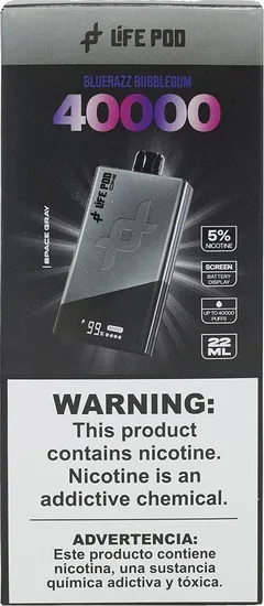 Vape Descartável Life Pod Space Gray - Bluerazz Bubblegum - 40000 Puffs