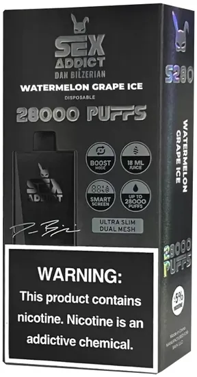 Vape Descartável Sex Addict BY Dan Bilzerian S280 Watermelon Grape Ice 28000 Puffs